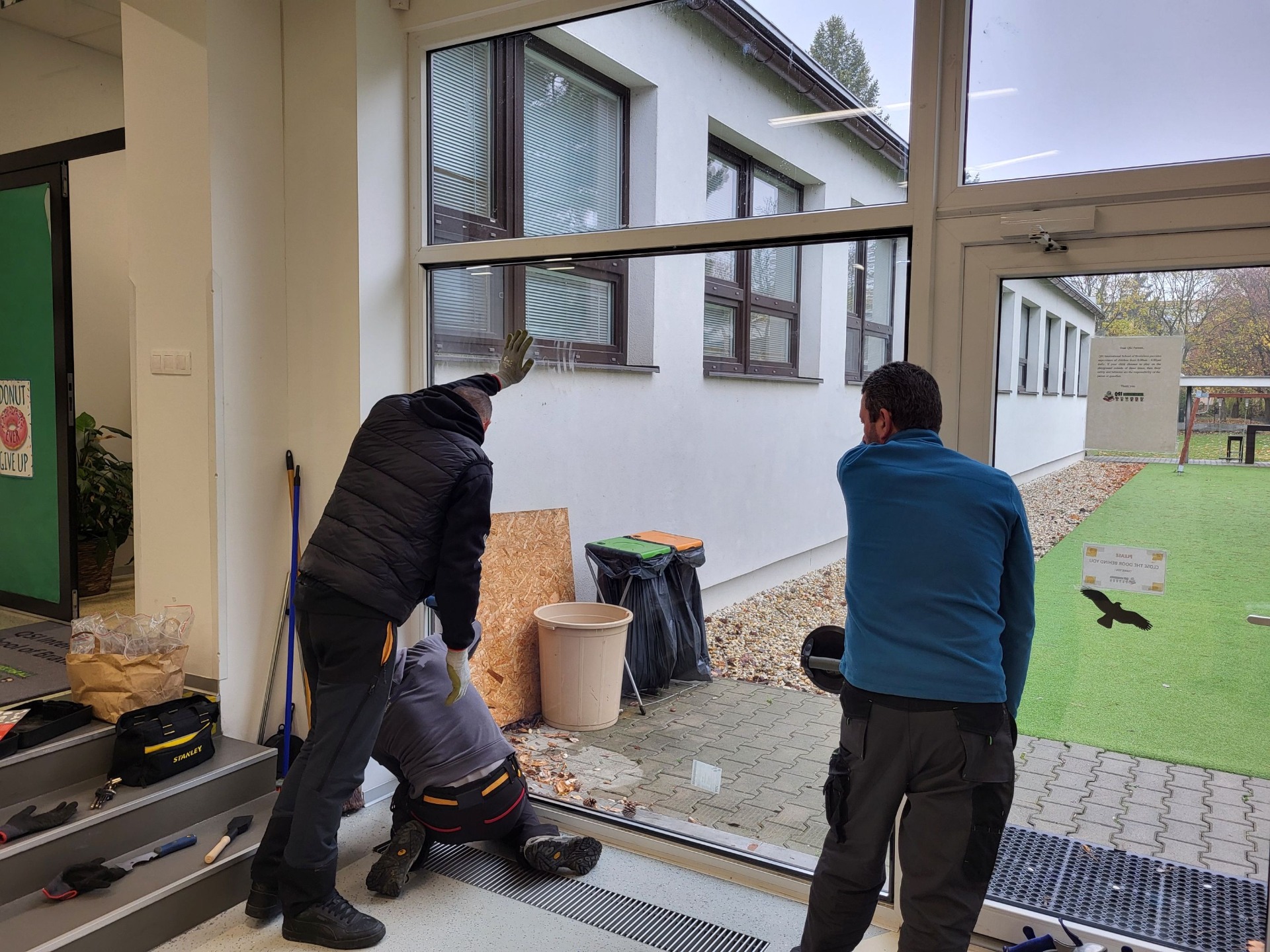 Výmena 140kg rozbitého skla v súkromnej škole.